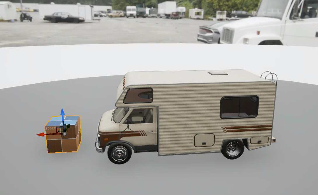 The scalebox can be included in the render, and when enabled, it automatically positions itself beside the asset. It adjusts to match the asset's height and dynamically updates its grid material to display accurate measurements.